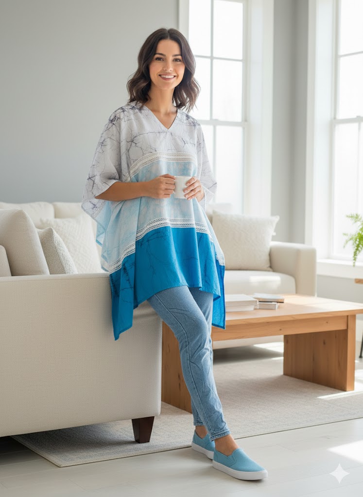 Ayaska Handcrafted Batik Poncho_Blue Dream- 3 Layer