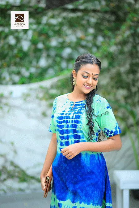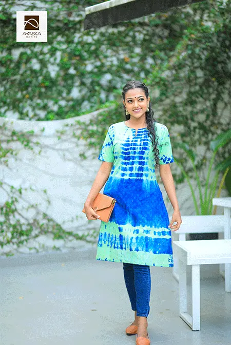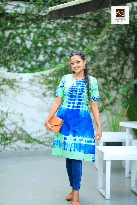 BLUE AND GREEN TIE-DYE KURTHA TOP